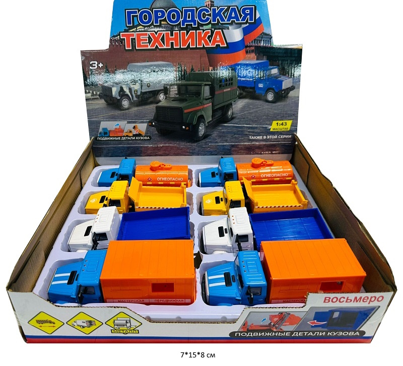 Размер упаковки: 11 х 5,5 х 4 см192.59 руб. 385.17 руб. - Модель металл. арт. G0131 Грузовик с прицепом (6 шт.) шоубокс_×Модель металл. арт. G0131 Грузовик с прицепом (6 шт.) шоубокс_Металлическая машинка грузовик контейнеровоз