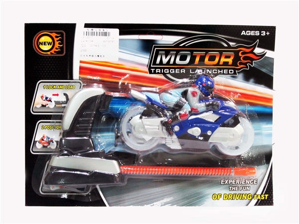 Инерционный гоночный автомобиль с пусковым устройством. Главной особенностью являются мотоциклы, которые крепятся к корпусу машинки. Ими можно выстреливать вперед, нажимая соответствующие механические кнопки.