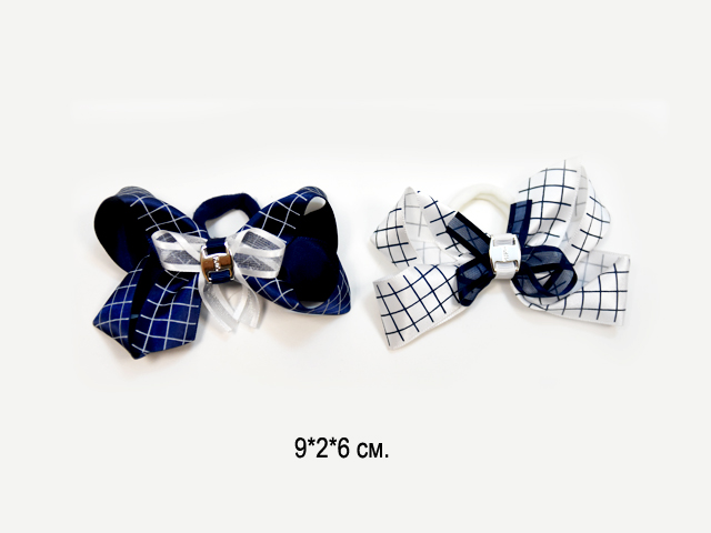 Бант арт. 709-B01-1 Двухцветный мелкая клетка на резинке 2 вида (24 шт.) на листе