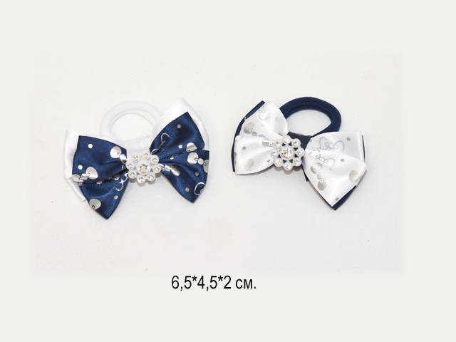 Бант арт. 709-B01-4 Двухцветный рисунок мелкий серебро на резинке 2 вида (24 шт.) на листе