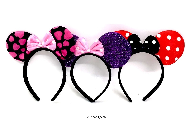 Бант арт. W/B01-1-709 Двухцветный с рисунком "Бантик" на резинке 2 вида (24 шт.) на листе
