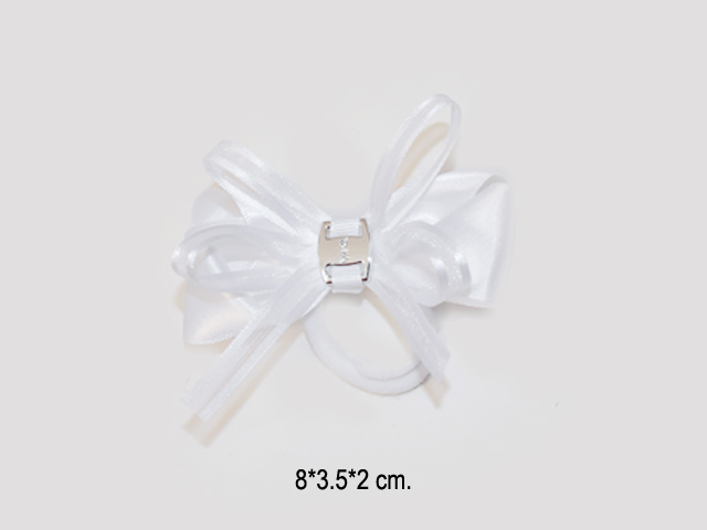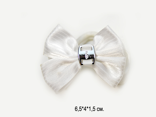 Бант арт. KP-5768-1 Белый шелковый с тонкой лентой на резинке (24 шт.) на листе