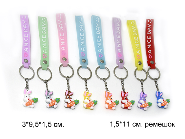 Брелок арт. 601-100/M-18 Зайка фигурный с пожеланием в ассорт. (100 шт.) в пак.Выразительный брелок для ключей поможет выделить и не перепутать свои ключи с подобными по структуре другими ключами.