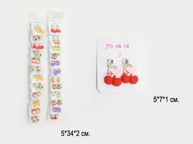 Набор украшений арт. 0590-709 Клипсы "Ягоды, фрукты, овощи" ассорти 1 пара (12шт.) в пак.
